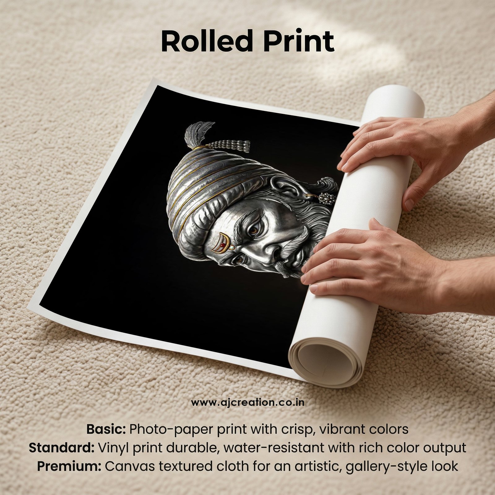 Rolled Print (Print Only – No Frame) :  Premium printed sheet without frame/board; safely rolled in a tube; perfect for custom framing.