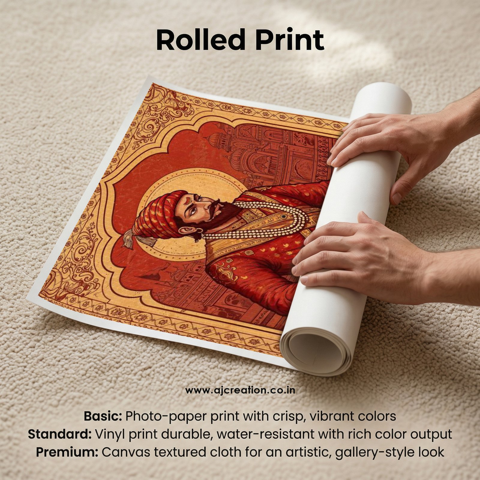 Rolled Print (Print Only – No Frame) : Premium printed sheet without frame/board; safely rolled in a tube; perfect for custom framing.