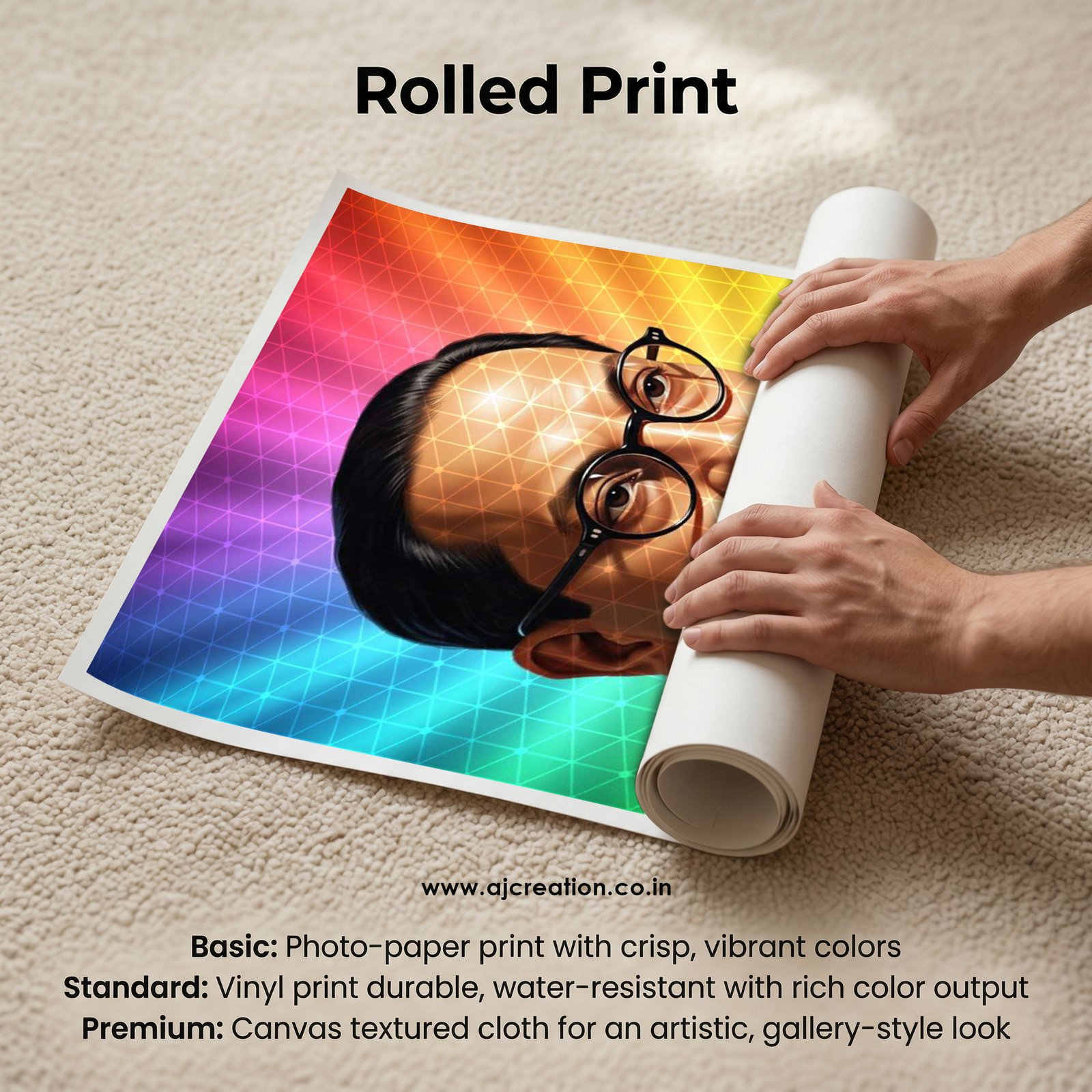 Rolled Print (Print Only – No Frame) :  Premium printed sheet without frame/board; safely rolled in a tube; perfect for custom framing.