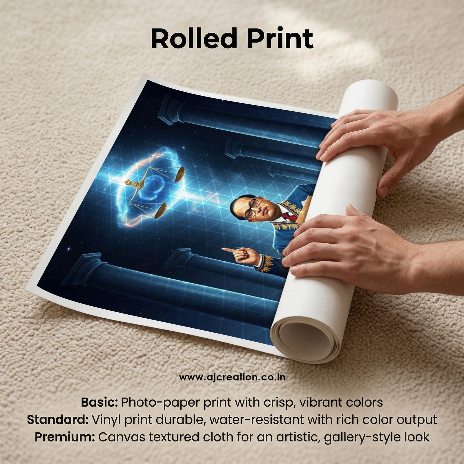 Rolled Print (Print Only – No Frame) :  Premium printed sheet without frame/board; safely rolled in a tube; perfect for custom framing.