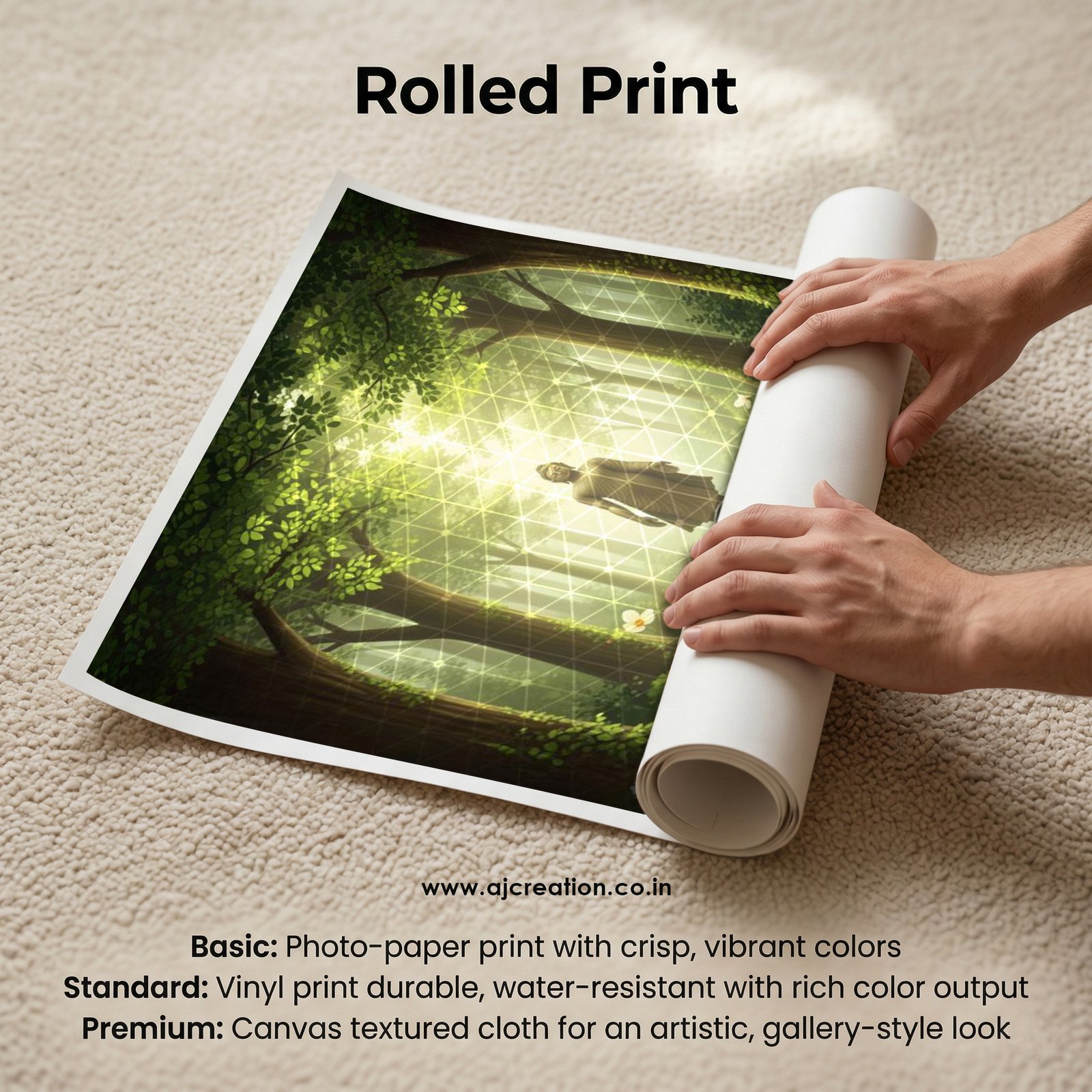 Rolled Print (Print Only – No Frame) : Premium printed sheet without frame/board; safely rolled in a tube; perfect for custom framing.