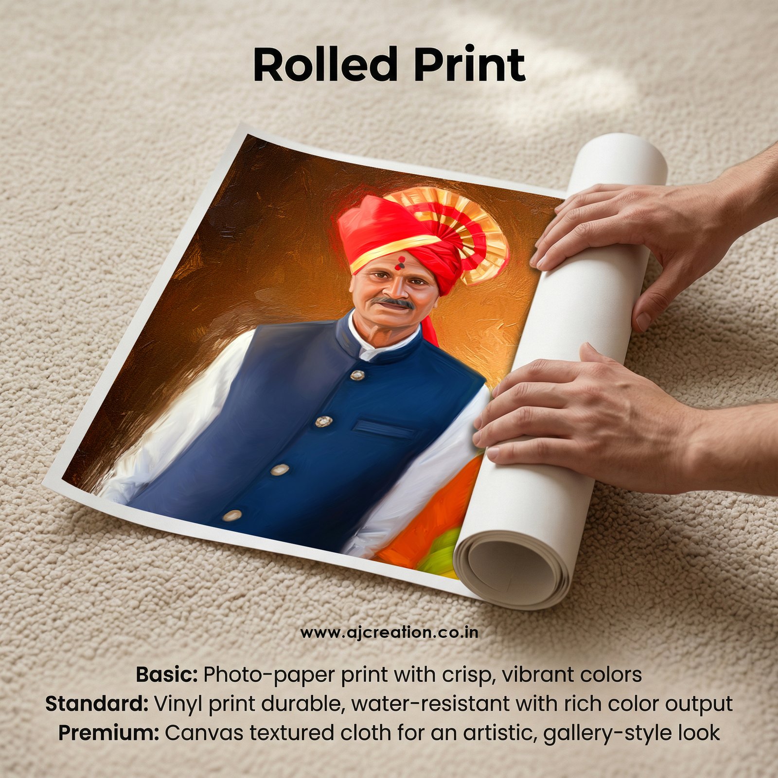 Rolled Print (Print Only – No Frame) :  Premium printed sheet without frame/board; safely rolled in a tube; perfect for custom framing.