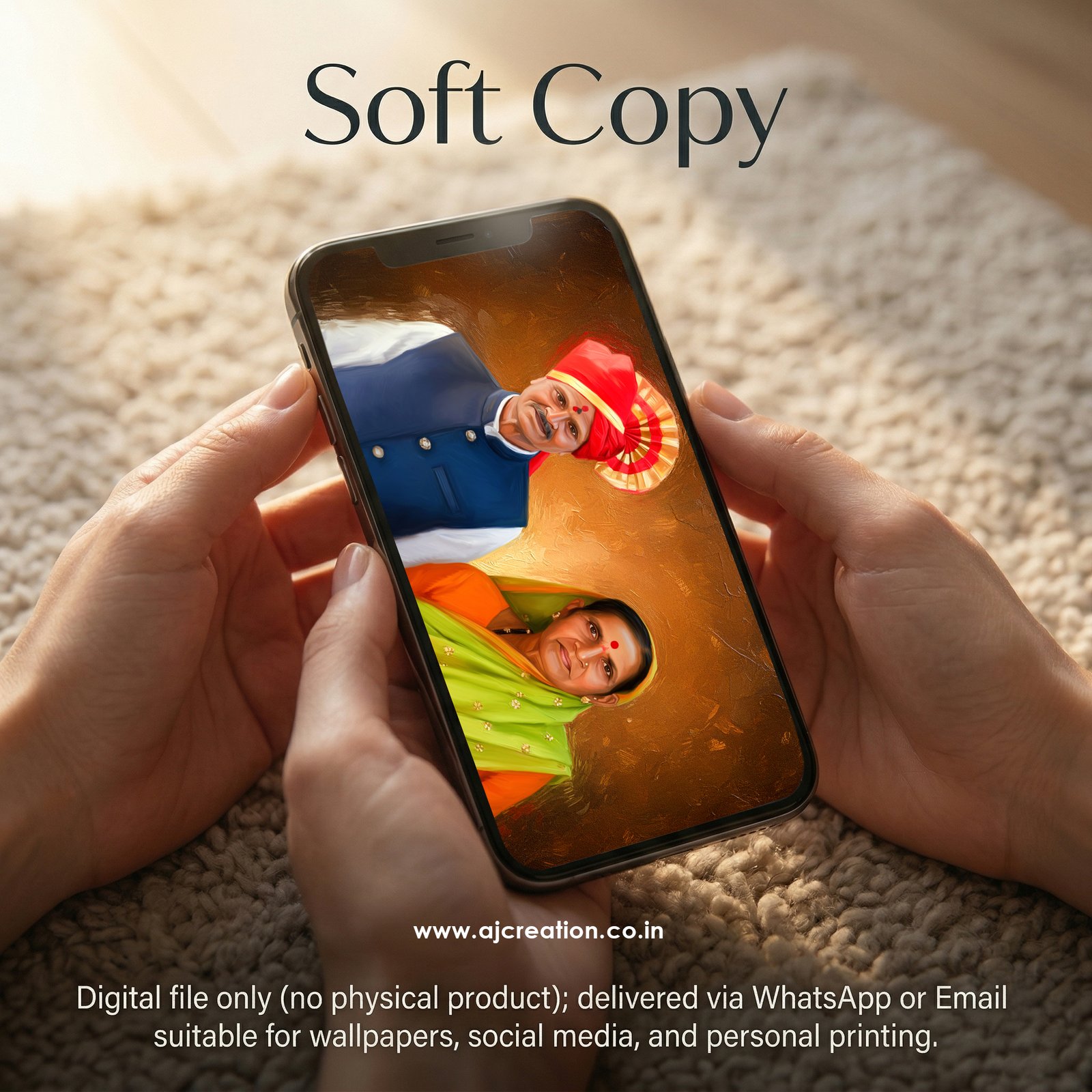 Soft Copy (Digital File) : Digital file only (no physical product); delivered via WhatsApp or Email; suitable for wallpapers, social media, and personal printing.