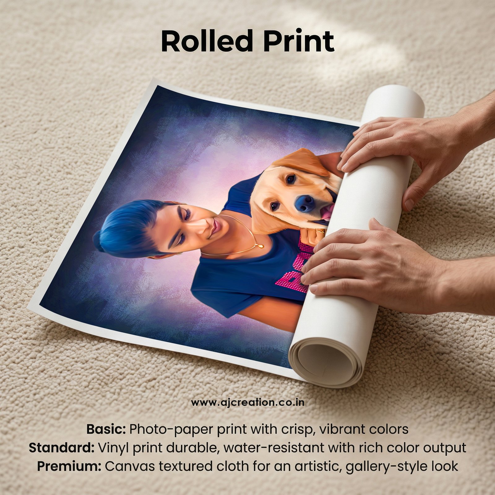 Rolled Print (Print Only – No Frame) :  Premium printed sheet without frame/board; safely rolled in a tube; perfect for custom framing.
