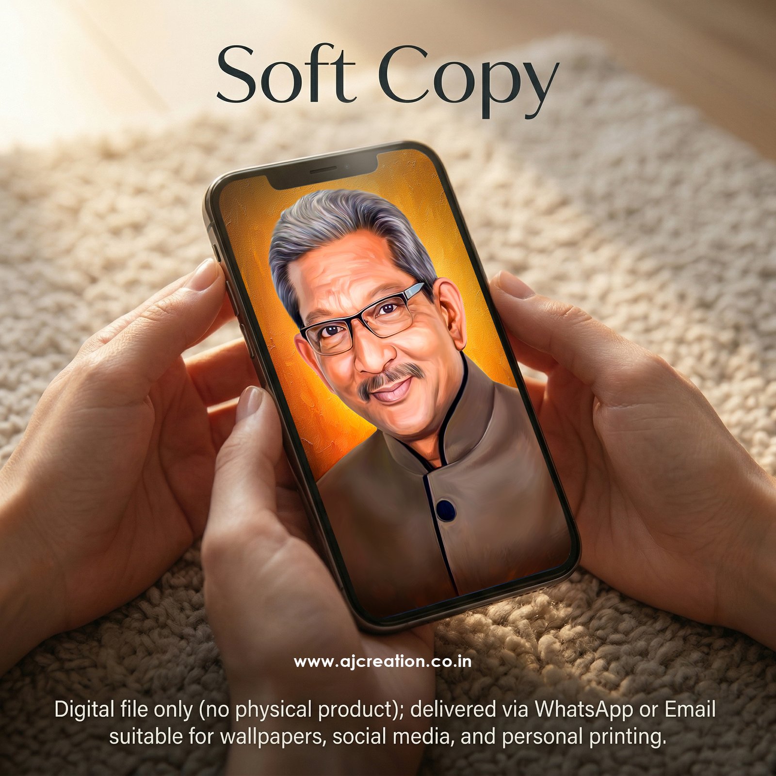 Soft Copy (Digital File) : Digital file only (no physical product); delivered via WhatsApp or Email; suitable for wallpapers, social media, and personal printing.